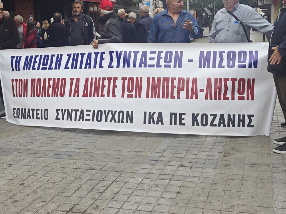 Με μαζική συμμετοχή πραγματοποιήθηκε η απεργιακή συγκέντρωση της 1ης Οκτωβρίου στην Κοζάνη, στο πλαίσιο της 24ωρης πανελλαδικής κινητοποίησης. Δύο χωριστά απεργιακά μπλοκ συγκροτήθηκαν στο κέντρο της πόλης. Στην κεντρική πλατεία συγκεντρώθηκαν το Εργατικό Κέντρο Κοζάνης, το Νομαρχιακό Τμήμα της ΑΔΕΔΥ, καθώς και σωματεία και σύλλογοι εργαζομένων. Στον πεζόδρομο πραγματοποιήθηκε ξεχωριστή συγκέντρωση από σωματεία και φορείς που συσπειρώνονται στο ΠΑΜΕ. Παρόντες ήταν εργαζόμενοι από την υγεία, την εκπαίδευση, την αυτοδιοίκηση, τα τεχνικά επαγγέλματα και το εμπόριο, μαζί με συνταξιούχους, νεότερους εργαζόμενους καθώς και φοιτητές.