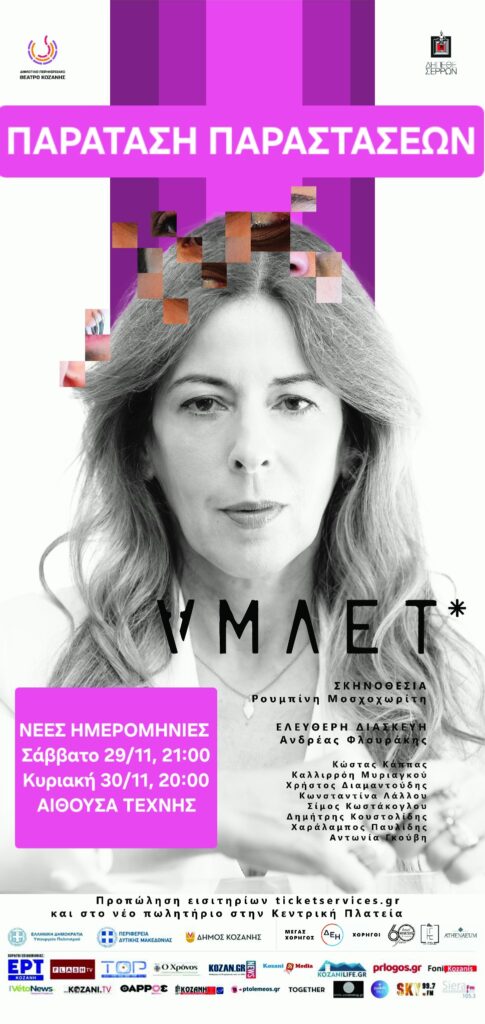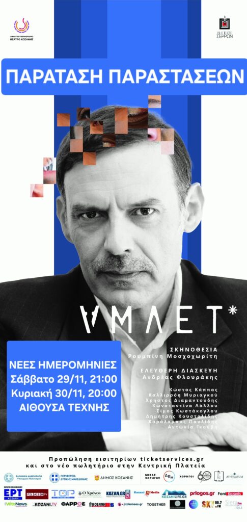 Κλείστε έγκαιρα τα εισιτήριά σας και επωφεληθείτε από τις μειωμένες τιμές προπώλησης στο ticketservices.gr/event/dipethe-kozanis-amlet καθώς και στο νέο πωλητήριο στην κεντρική πλατεία (Δευτέρα – Σάββατο, ωράριο καταστημάτων)