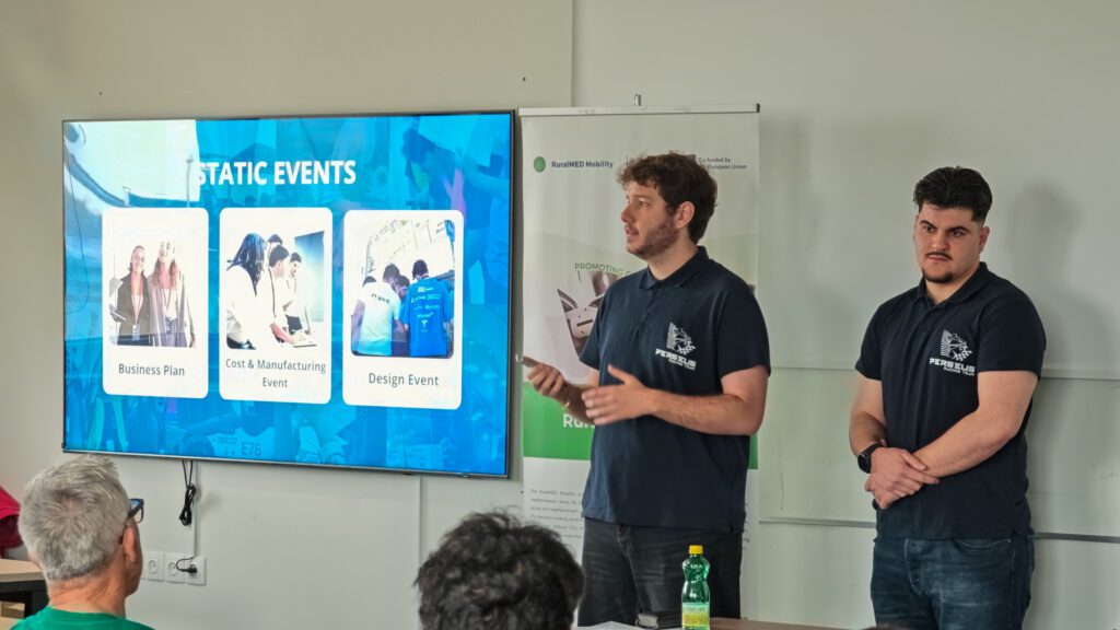 Ιδιαίτερο ενδιαφέρον προσέλκυσε η παρουσίαση της Perseus Racing Team του Πανεπιστημίου Δυτικής Μακεδονίας, από τους κ. Σαββόπουλο Νικόλαο και κ. Τσιάνη Κωνσταντίνο, οι οποίοι ανέδειξαν τον σχεδιασμό και την κατασκευή ηλεκτρικού μονοθεσίου. Η δράση συνοδεύτηκε από ξενάγηση και επίδειξη στον χώρο κατασκευής, προσφέροντας στους συμμετέχοντες μια βιωματική εμπειρία εφαρμογής της ηλεκτροκίνησης στην πράξη.