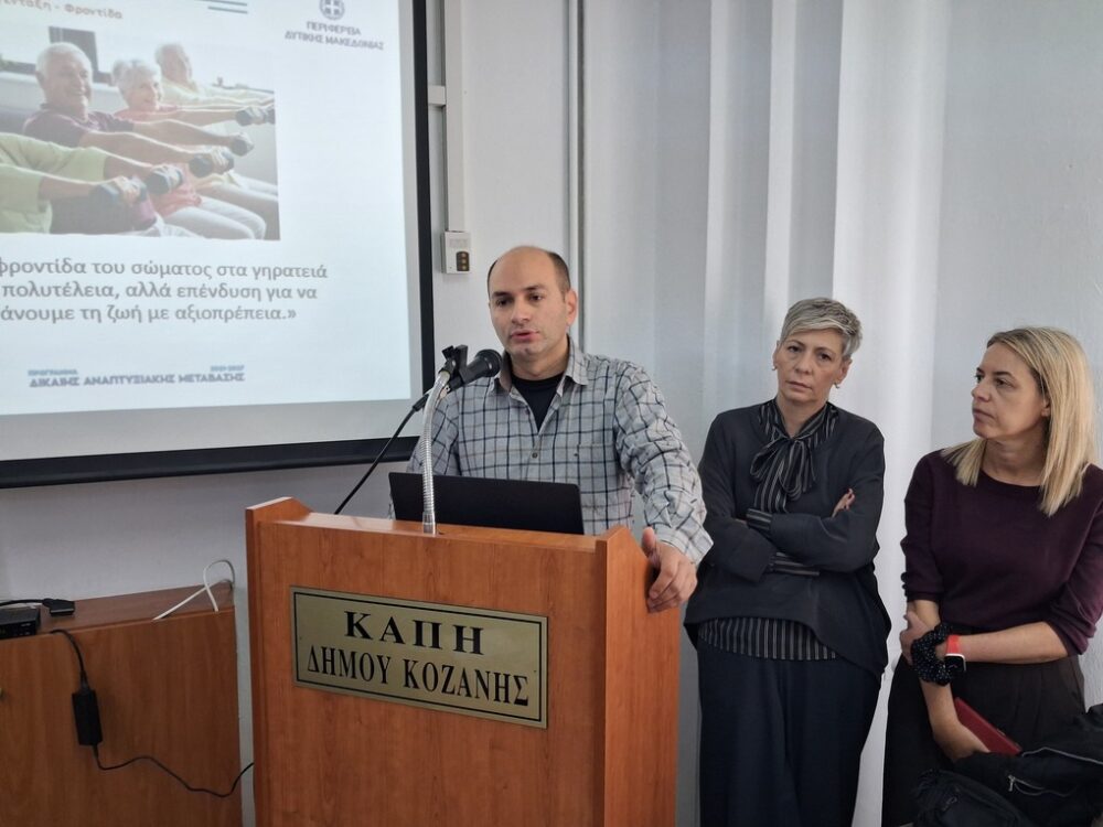 Με μεγάλη συμμετοχή πραγματοποιήθηκε το πρωί της Τετάρτης 15 Οκτωβρίου 2025 στο Α΄ ΚΑΠΗ του Δήμου Κοζάνης ενημερωτική εκδήλωση για την ενδυνάμωση του μυοσκελετικού, την άσκηση και τη διατροφή. Στη δράση συμμετείχαν οι γιατροί του Ενιαίου Κοινωνικού Δικτύου Δυτικής Μακεδονίας, Ματίνα Κουντουρά και Μαρία Μόσχου, καθώς και ο γυμναστής Δημήτρης Βαλταδώρος από το Τμήμα Γυμναστικής των ΚΑΠΗ.