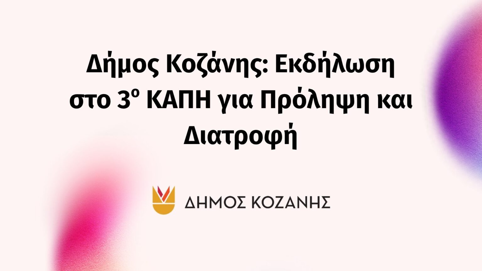 Ενημερωτική εκδήλωση με θέμα «Πρόληψη και Διατροφή στην Τρίτη Ηλικία» διοργανώνει το 3ο ΚΑΠΗ του Δήμου Κοζάνης, την Παρασκευή 3 Απριλίου 2026 στις 10:30 το πρωί.