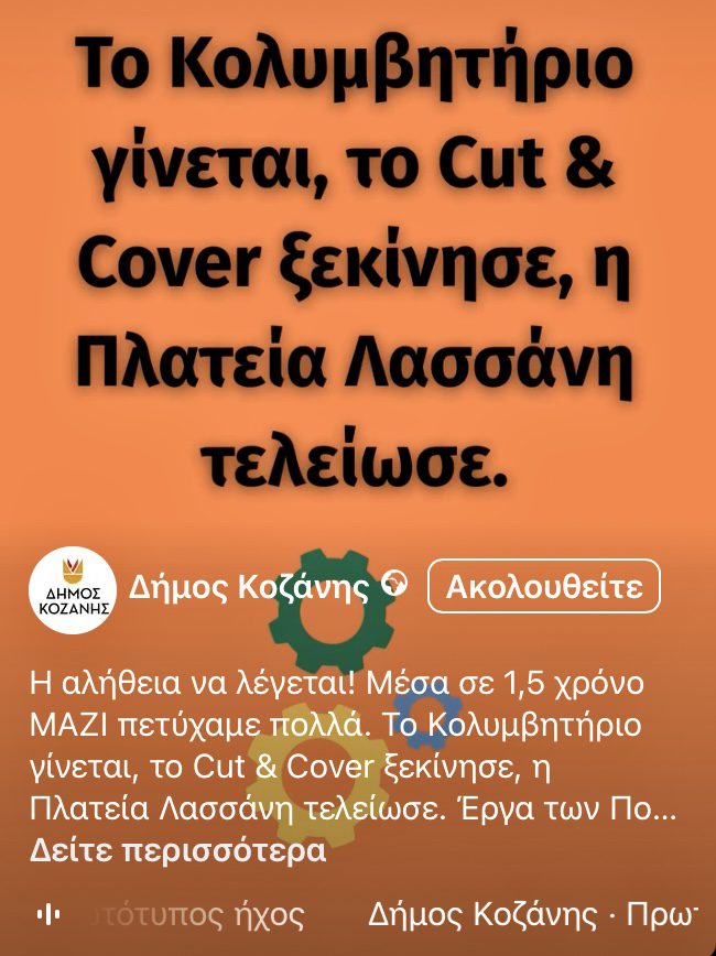 «Η μόνη συμβολή του», τονίζει η «Ενότητα», «είναι ότι αφήνει τις Τεχνικές Υπηρεσίες του Δήμου Κοζάνης να κάνουν τη δουλειά τους». Προσθέτει πως ίδια τακτική οικειοποίησης αναμένεται να συνεχιστεί και με τα έργα ΣΔΙΤ, την ενεργειακή κοινότητα, τα νέα κοιμητήρια, τους χαρακτηρισμούς κοινόχρηστων χώρων στο κέντρο της πόλης και τις χρηματοδοτήσεις από τον Πυλώνα 3 της Δίκαιης Αναπτυξιακής Μετάβασης.