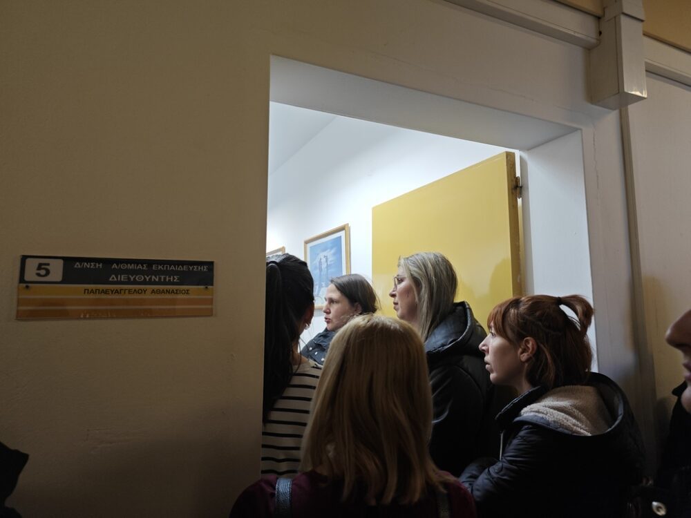 Οι γονείς είχαν κλείσει ραντεβού με τον Διευθυντή Πρωτοβάθμιας Εκπαίδευσης, Αθανάσιο Παπαευαγγέλου. Ωστόσο, όταν ενημερώθηκαν ότι η συζήτηση θα πραγματοποιούνταν στο γραφείο του με μόνο μια μικρή αντιπροσωπεία, οι παριστάμενοι αντέδρασαν έντονα, χαρακτηρίζοντας τη διαδικασία «αντιδημοκρατική» και «απαράδεκτη». Η επιμονή τους οδήγησε τελικά τον κ. Παπαευαγγέλου να μεταφέρει τη συζήτηση στην είσοδο του κτιρίου, αμέσως μετά την απόφασή τους να αποχωρήσουν σε ένδειξη διαμαρτυρίας.
