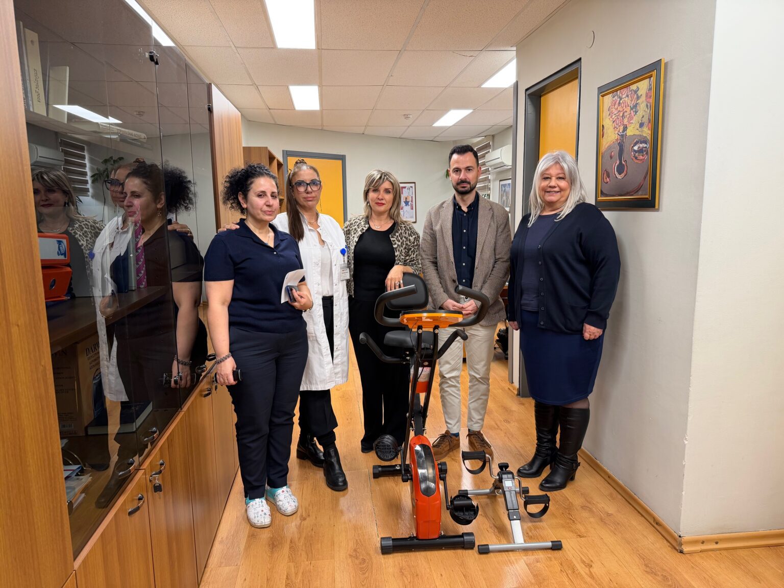 Παραδόθηκε την Τετάρτη στο Γενικό Νοσοκομείο Πτολεμαΐδας εξοπλισμός ήπιας άσκησης στο πλαίσιο της δράσης «Αθλητές απέναντι στον Καρκίνο», ενισχύοντας τις παρεμβάσεις που αφορούν τη συνολική φροντίδα των ασθενών. Η δωρεά περιλαμβάνει ένα στατικό, αναδιπλούμενο ποδήλατο γυμναστικής για το Ογκολογικό Τμήμα και μία μαγνητική πεταλιέρα, τύπου mini bike, για το Νεφρολογικό Τμήμα.