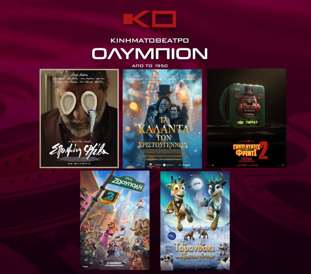 Με χριστουγεννιάτικη ατμόσφαιρα και κινηματογραφικές επιλογές για μικρούς και μεγάλους συνεχίζεται το πρόγραμμα του κινηματογράφου «Ολύμπιον» από σήμερα Πέμπτη 4 έως και την Τετάρτη 10 Δεκεμβρίου.