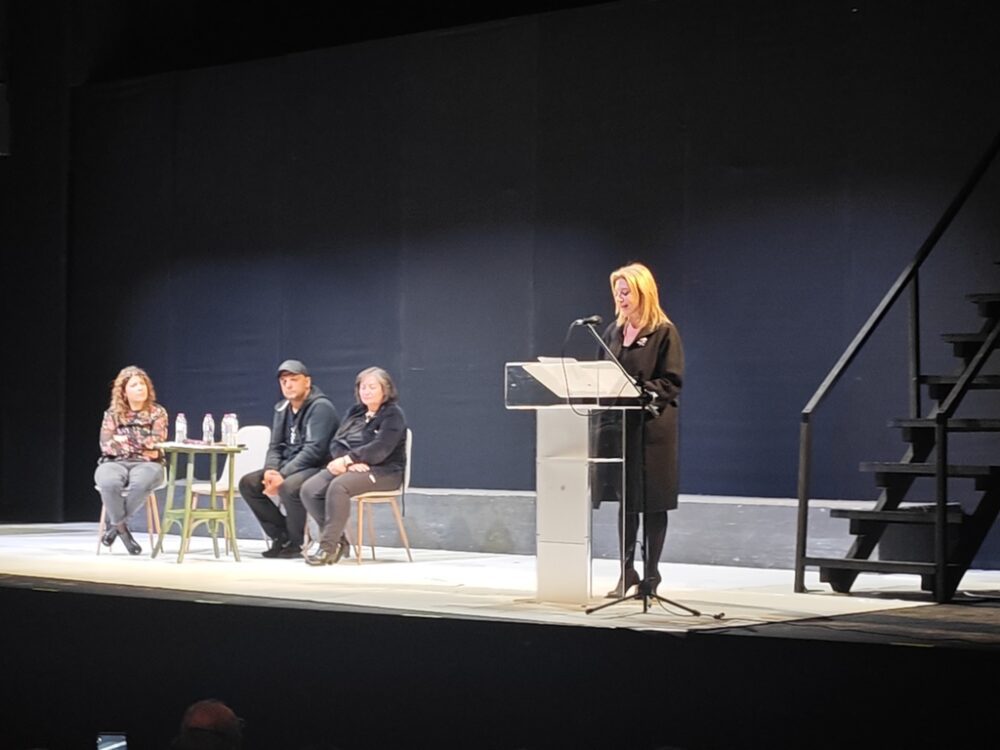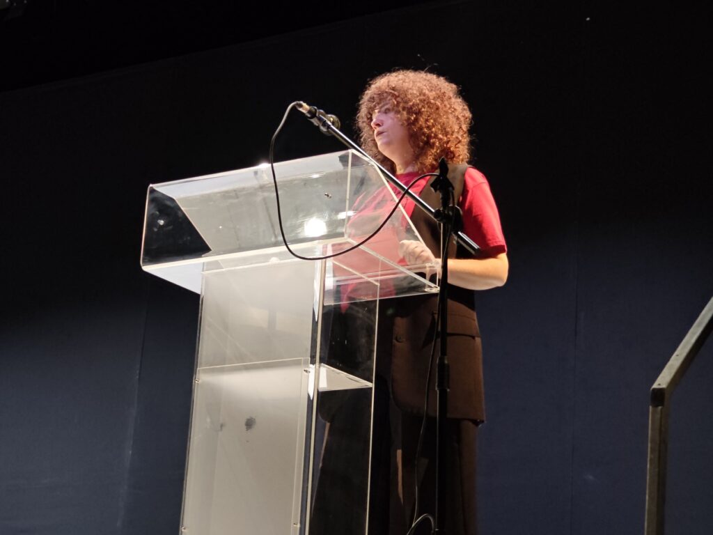 Ανάμεσα στις πιο βαριές και φορτισμένες στιγμές της εκδήλωσης ήταν η τοποθέτηση της Μαρίας Καρυστιανού, η οποία έχασε την κόρη της στα Τέμπη. Στάθηκε μπροστά στο κοινό με τη δύναμη μιας μάνας που πενθεί αλλά δεν παραιτείται. «Στέκομαι απέναντί σας με βαριά καρδιά από την απώλεια και την ευθύνη απέναντι στην κόρη μου, αλλά και αποφασισμένη», είπε από την αρχή, δίνοντας τον τόνο της ομιλίας της.