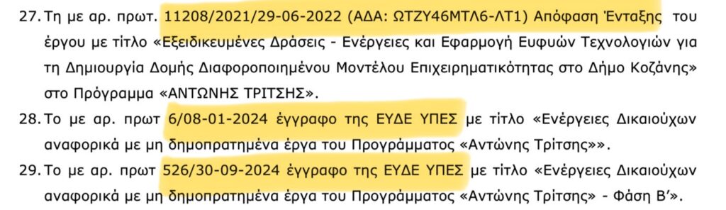 Με αιχμηρή ανακοίνωση τοποθετείται η δημοτική παράταξη «Ενότητα» με επικεφαλής τον Λάζαρο Μαλούτα σχετικά με την απένταξη έργου του Δήμου Κοζάνης από το πρόγραμμα “Αντώνης Τρίτσης”. Όπως επισημαίνεται, με ημερομηνία 9 Δεκεμβρίου εκδόθηκε η απόφαση του Υπουργού Εσωτερικών για τη διακοπή χρηματοδότησης του έργου «Εξειδικευμένες Δράσεις – Ενέργειες και Εφαρμογή Ευφυών Τεχνολογιών για τη Δημιουργία Δομής Διαφοροποιημένου Μοντέλου Επιχειρηματικότητας στο Δήμο Κοζάνης», προϋπολογισμού περίπου 1,4 εκατομμυρίων ευρώ, το οποίο είχε εγκριθεί στις 29 Ιουνίου 2022.