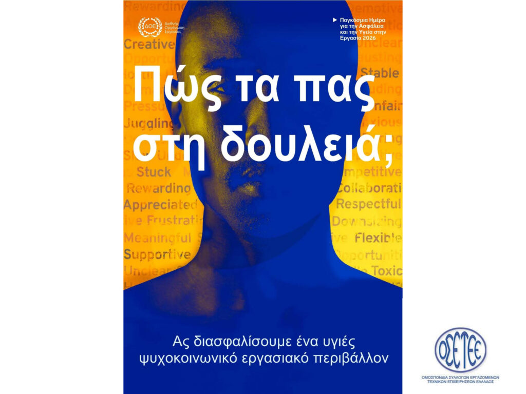 Ανησυχητικές διαστάσεις λαμβάνει το ζήτημα της υγείας και ασφάλειας στην εργασία στην Ελλάδα, με την Ομοσπονδία Συλλόγων Εργαζομένων Τεχνικών Επιχειρήσεων Ελλάδος (ΟΣΕΤΕΕ) να κρούει τον κώδωνα του κινδύνου, παρουσιάζοντας νέα στοιχεία για τα εργατικά δυστυχήματα και τις ανθρώπινες απώλειες στους χώρους εργασίας, με αφορμή την Παγκόσμια Ημέρα για την Υγεία και Ασφάλεια στην Εργασία και την Ημέρα Μνήμης Θυμάτων στην Εργασία.