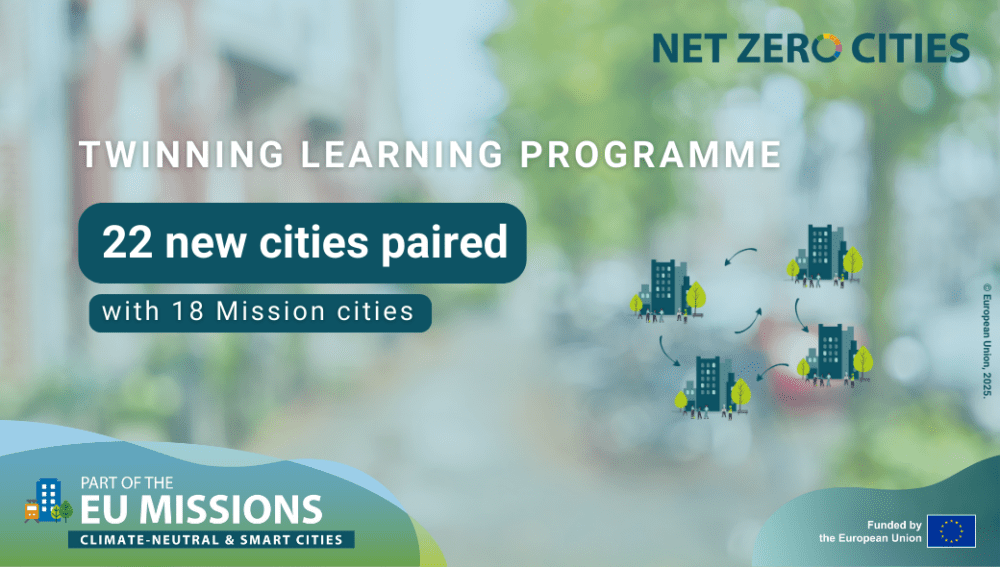 Το Πρόγραμμα Μάθησης Αδελφοποίησης, που χρηματοδοτείται από την Ευρωπαϊκή Ένωση μέσω του NetZeroCities, συμβάλλει στη δημιουργία ενός δυναμικού δικτύου 112 ευρωπαϊκών πόλεων, οι οποίες εργάζονται συντονισμένα για ένα βιώσιμο και κλιματικά ουδέτερο μέλλον.