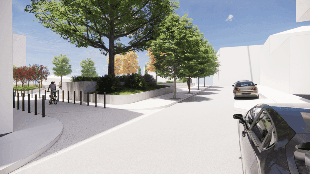 Το σχέδιο προβλέπει διατήρηση του μεγάλου πλατάνου της γωνίας, ενώ σε συνεργασία με την Τεχνική Υπηρεσία του Δήμου καθορίστηκαν ποια δέντρα θα παραμείνουν και ποια θα απομακρυνθούν. «Το πράσινο που προβλέπεται είναι μεγαλύτερο από το υφιστάμενο», τονίζει η Αννίτα Κουτσονάνου, διευκρινίζοντας ότι τα νέα φυτά θα χρειαστούν χρόνο για να αναπτυχθούν. Όπως επεσήμαναν, η αρχική εικόνα ίσως φανεί φτωχή, καθώς θα φυτευτούν νεαρά δέντρα για λόγους κόστους, όμως σε βάθος χρόνου η πλατεία θα πρασινίσει περισσότερο. Προβλέπεται επίσης, διαπλάτυνση πεζοδρομίων και περιορισμός της στάθμευσης σε ορισμένα σημεία, ώστε να αυξηθεί ο κοινόχρηστος χώρος για τους πεζούς.