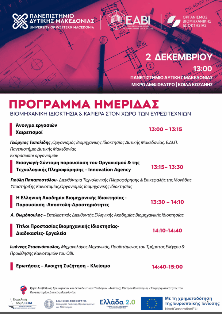 «Βιομηχανική Ιδιοκτησία & Καριέρα στον Χώρο των Ευρεσιτεχνιών»,