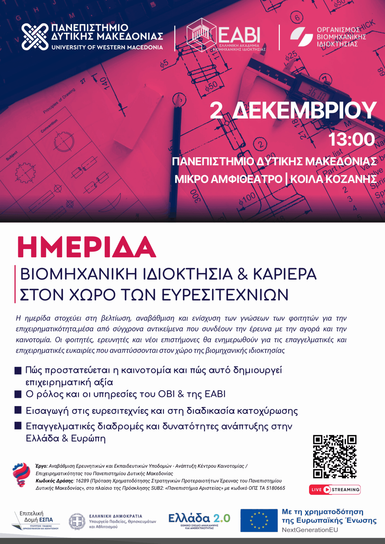 Την Τρίτη 2 Δεκεμβρίου 2025, στις 13:00, στο Μικρό Αμφιθέατρο της Πανεπιστημιούπολης στα Κοίλα Κοζάνης, το Πανεπιστήμιο Δυτικής Μακεδονίας διοργανώνει ημερίδα με θέμα: