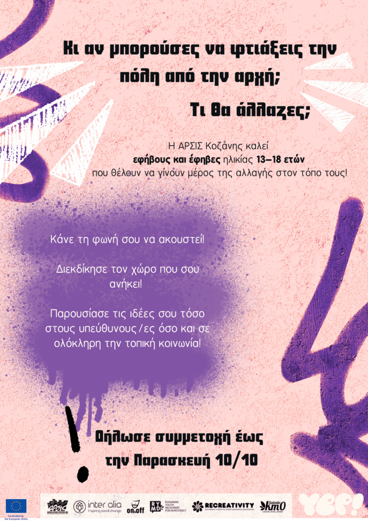 Η ΑΡΣΙΣ Κοζάνης καλεί εφήβους και έφηβες ηλικίας 13–18 ετών που θέλουν να γίνουν μέρος της αλλαγής στον τόπο τους!