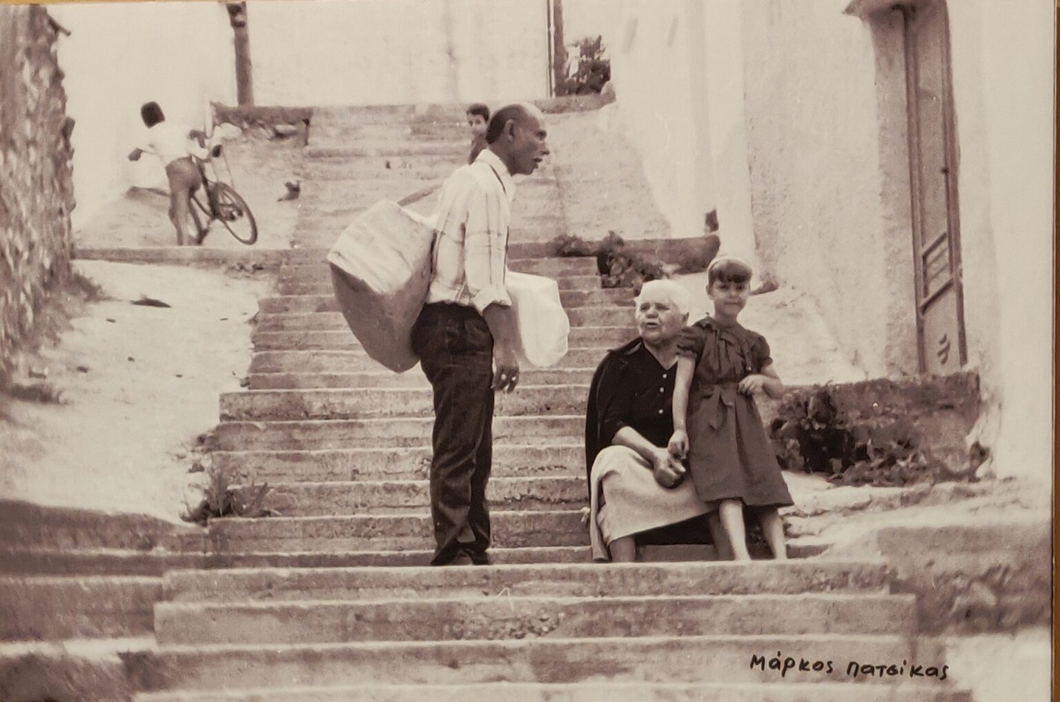 Έτυχε να συναντήσω το Μάρκο πολλές φορές εκείνα τα χρόνια σε κάποιο στενό, στα σοκάκια που ακόμα επιβίωναν στις γειτονιές, στον κεντρικό πεζόδρομο, στην πλατεία, στη λαϊκή αγορά που ξεκινούσε απ’ τη Λασσάνη και εκτείνονταν μέχρι τη Γιτιά. Ευγενικός, μετρημένος, μειλίχιος, με αχώριστο σύντροφο πάντα τη φωτογραφική του μηχανή. Ομολογώ πως δεν ήμουν τότε σε θέση ν’ αξιολογήσω ότι ο φακός του δεν απαθανάτιζε απλώς στιγμιότυπα αλλά έπαιζε και το ρόλο του θεματοφύλακα της μνήμης της πόλης. Δεν συγκέντρωνε απλώς υλικό, μάζευε όσα βιαζόμασταν να προσπεράσουμε σε μια καθημερινότητα που κινούνταν με γρήγορους ρυθμούς και άλλαζε διαρκώς. Έτσι κατάφερε να γίνει συλλέκτης μερικών από τις αναμνήσεις μας και χορηγός μιας πολύτιμης παρακαταθήκης που συνεισφέρει κι άλλο σημαντικό υλικό για την καλύτερη δυνατή εξιστόρηση της διαδρομής της πόλης μας.