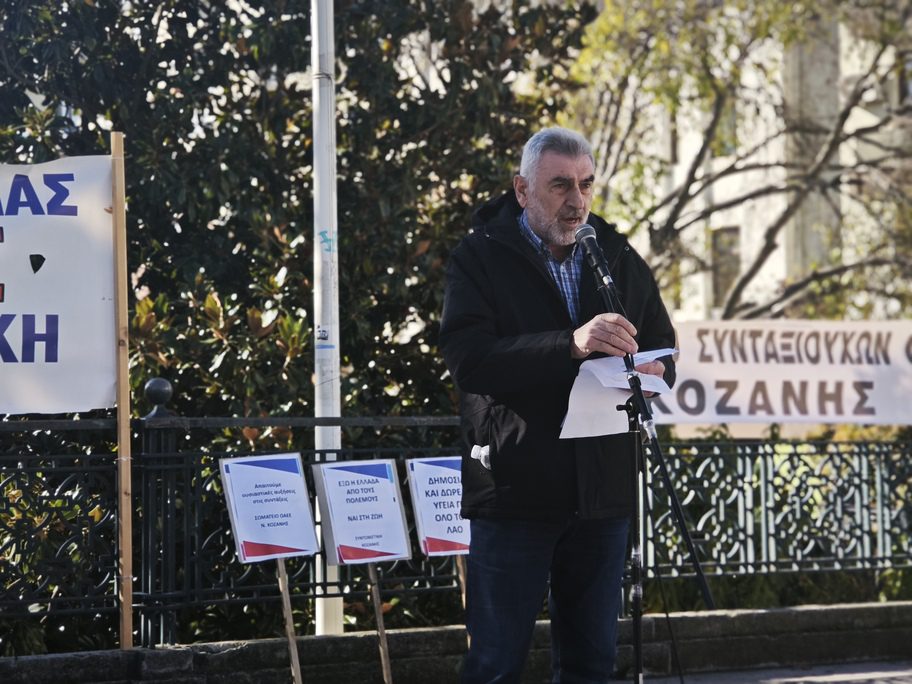 Ο πρόεδρος των συνταξιούχων ΙΚΑ Κοζάνης, Παναγιώτης Τάτσιος, τόνισε ότι οι συνταξιούχοι «βγαίνουμε ξανά στους δρόμους για τα προβλήματά μας που δεν είναι λίγα», επισημαίνοντας πως ο πρωθυπουργός «δεν έχει δώσει τίποτα» στους ανθρώπους της τρίτης ηλικίας. Κάλεσε την κυβέρνηση «να αφήσει τις κοροϊδίες» και να δει σοβαρά τα προβλήματα των συνταξιούχων, σημειώνοντας ότι αποτελούν πλειοψηφία καθώς πίσω τους υπάρχουν οικογένειες. Υπογράμμισε ότι το αίτημά τους είναι ξεκάθαρο: «να μας δώσουν αυτά που μας έχουν αφαιρέσει».