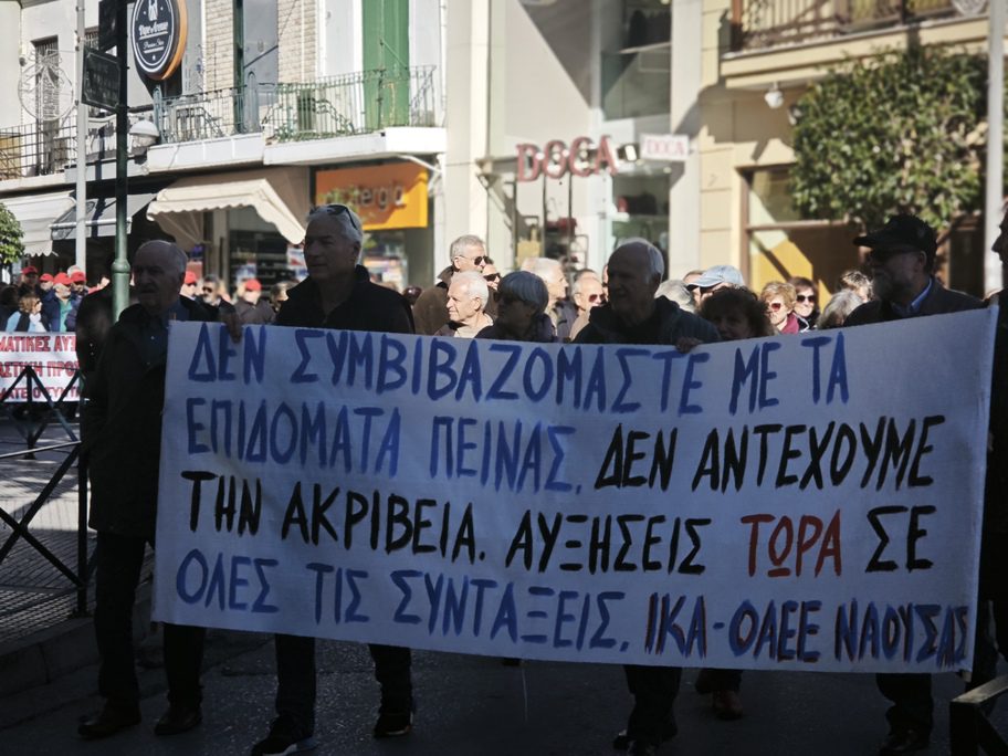 Οι διεκδικήσεις των συνταξιούχων επικεντρώθηκαν στις χαμηλές συντάξεις που, όπως τόνισαν, έχουν συρρικνωθεί από τις περικοπές των μνημονίων και τις πολιτικές που ακολούθησαν διαχρονικά οι κυβερνήσεις, οδηγώντας μεγάλο μέρος των συνταξιούχων στη φτωχοποίηση. Στο επίκεντρο βρέθηκε και η ακρίβεια, που «εξανεμίζει» το εισόδημά τους με αποτέλεσμα «στα μισά του μήνα η σύνταξη να έχει τελειώσει», όπως χαρακτηριστικά επισημάνθηκε. Έντονη ήταν και η αναφορά στην υποβάθμιση της υγείας και της πρόνοιας, στα πανάκριβα φάρμακα και στις ελλείψεις στο δημόσιο σύστημα.