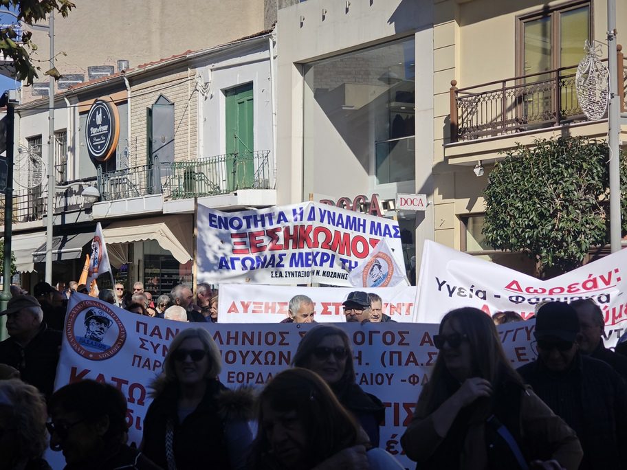 Συνταξιούχοι από όλη τη Δυτική Μακεδονία και γειτονικές περιοχές διαδήλωσαν για συντάξεις, ακρίβεια και υγεία