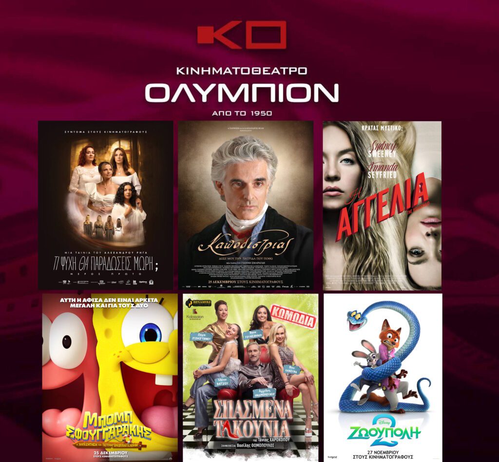 Για το πρόγραμμα του κινηματογράφου επισκεφτείτε την ιστοσελίδα: www.cineolympion.gr
