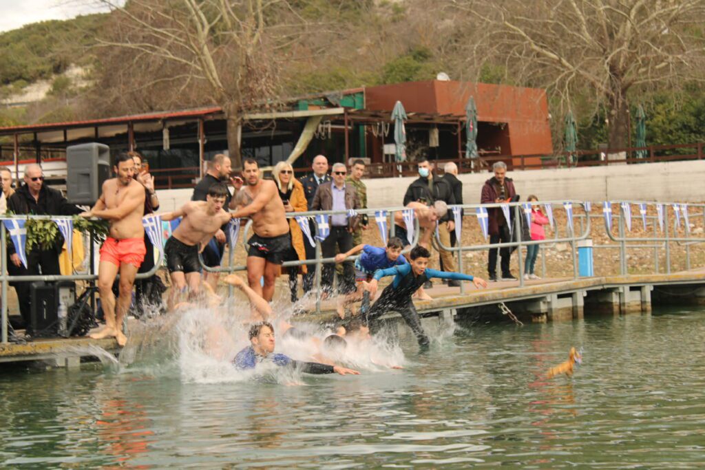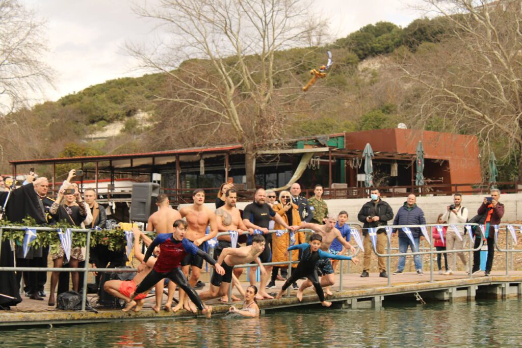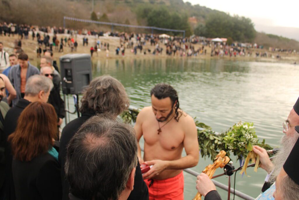 Η τελετή πραγματοποιήθηκε δίπλα στην πλωτή εξέδρα της Νεράιδας, μέσα σε ένα επιβλητικό φυσικό τοπίο που υπογράμμισε τη σημασία των παραδόσεων και τη διαχρονική σχέση της περιοχής με τον εορτασμό των Θεοφανίων.