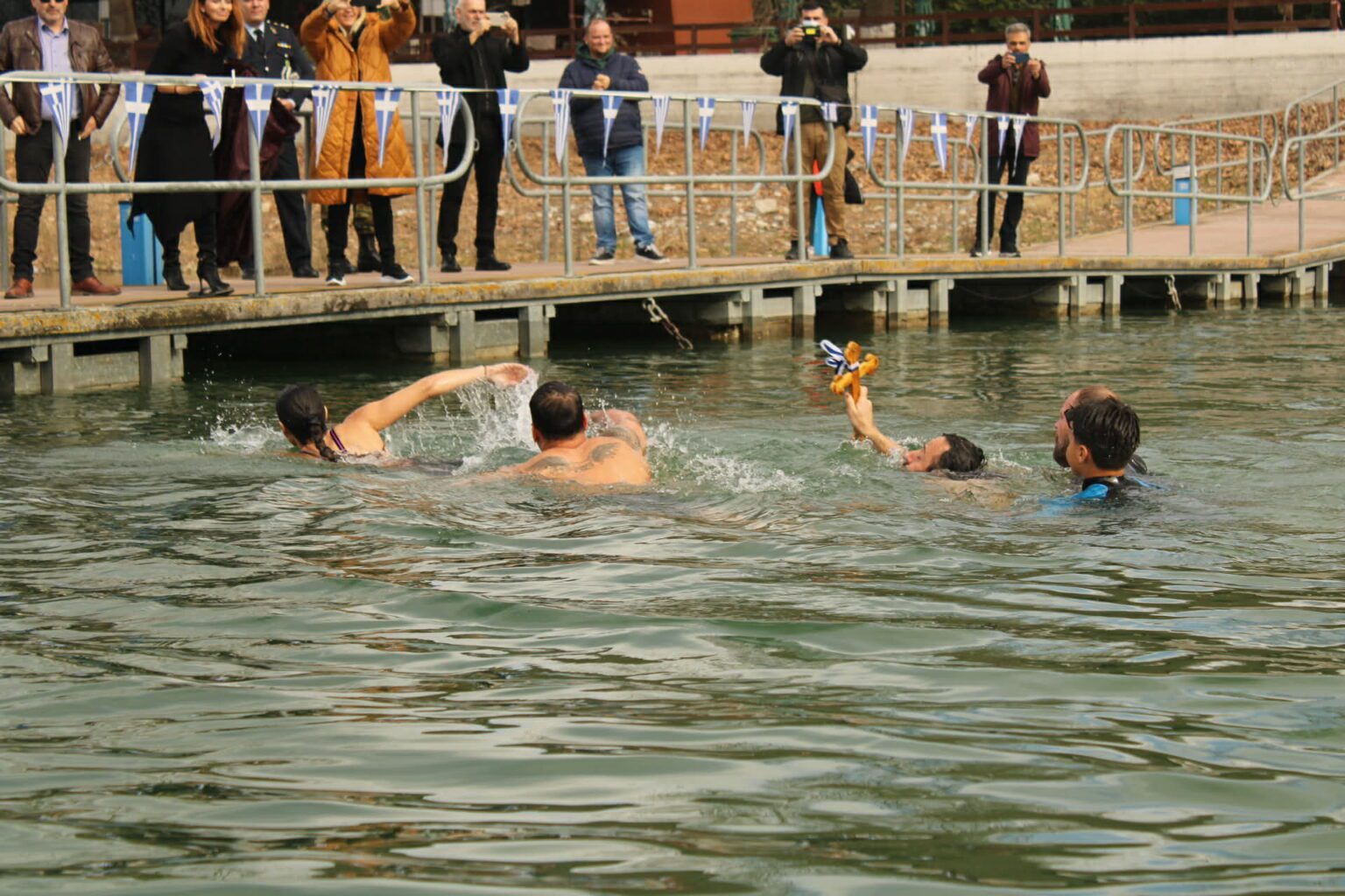Η τελετή πραγματοποιήθηκε δίπλα στην πλωτή εξέδρα της Νεράιδας, μέσα σε ένα επιβλητικό φυσικό τοπίο που υπογράμμισε τη σημασία των παραδόσεων και τη διαχρονική σχέση της περιοχής με τον εορτασμό των Θεοφανίων.