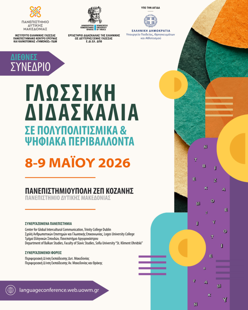 Το Πανεπιστήμιο Δυτικής Μακεδονίας και το Δημοκρίτειο Πανεπιστήμιο Θράκης διοργανώνουν Διεθνές Συνέδριο με τίτλο «Γλωσσική Διδασκαλία σε Πολυπολιτισμικά και Ψηφιακά Περιβάλλοντα», το οποίο θα πραγματοποιηθεί στις 8 και 9 Μαΐου 2026 στην Πανεπιστημιούπολη ΖΕΠ Κοζάνης υπό την αιγίδα του Υπουργείου Παιδείας, Θρησκευμάτων και Αθλητισμού.