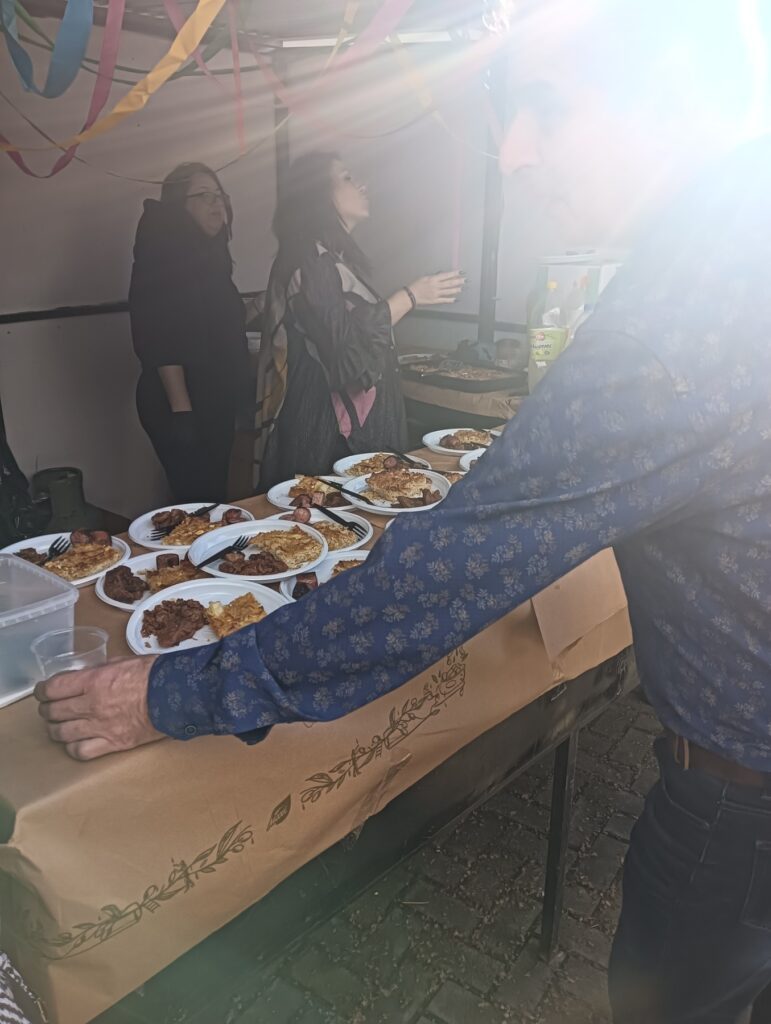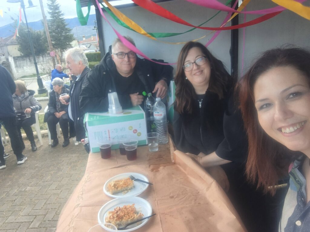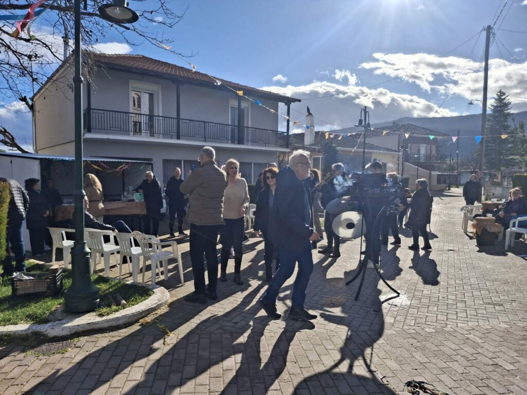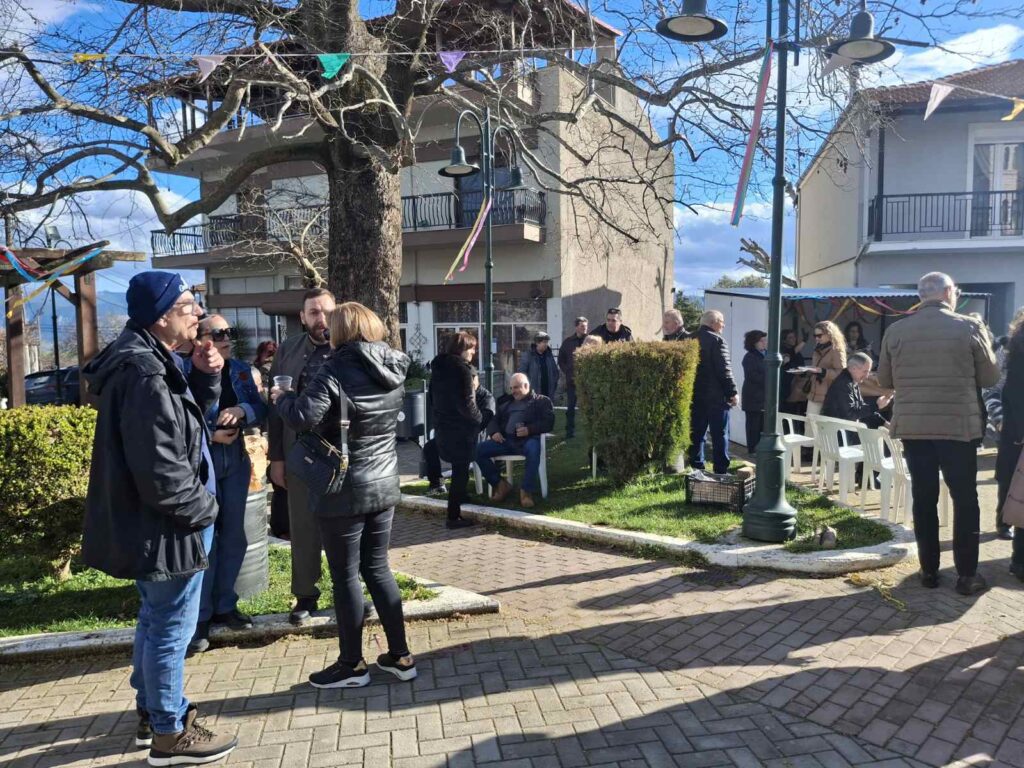 Οι παρευρισκόμενοι είχαν την ευκαιρία να δοκιμάσουν παραδοσιακές τραχανόπιτες, φτιαγμένες από τις γυναίκες του χωριού, καθώς και τσιγαρίδες και κρασί, σε μια συνάντηση με έντονο τοπικό χαρακτήρα και αναφορά στη γαστρονομική παράδοση του τόπου.