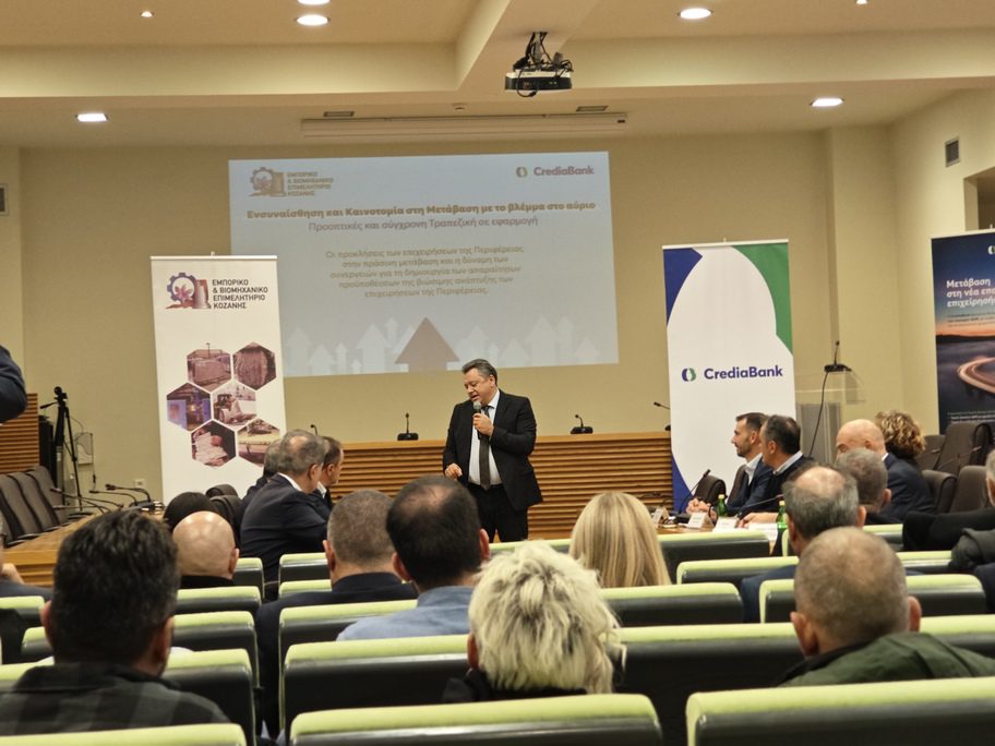 Στην εκδήλωση της Credia Bank σε συνεργασία με το Εμπορικό και Βιομηχανικό Επιμελητήριο Κοζάνης, το απόγευμα της Τετάρτης στο Κοβεντάρειο, παρουσιάστηκαν οι χρηματοδοτικές δυνατότητες που προσφέρονται στις επιχειρήσεις της Δυτικής Μακεδονίας, με στόχο τη στήριξη της βιώσιμης ανάπτυξης και τη διευκόλυνση της μετάβασης στην πράσινη οικονομία. Η τράπεζα, η οποία φιλοδοξεί να αποτελέσει στρατηγικό εταίρο της τοπικής επιχειρηματικής κοινότητας, πραγματοποίησε εκδήλωση με τίτλο «Ενσυναίσθηση και Καινοτομία στη Μετάβαση με το βλέμμα στο αύριο. Προοπτικές και σύγχρονη Τραπεζική σε εφαρμογή», όπου αναδείχθηκαν οι προκλήσεις που αντιμετωπίζουν οι επιχειρήσεις της Περιφέρειας αλλά και η σημασία των συνεργειών προκειμένου να δημιουργηθούν οι προϋποθέσεις για ανάπτυξη.