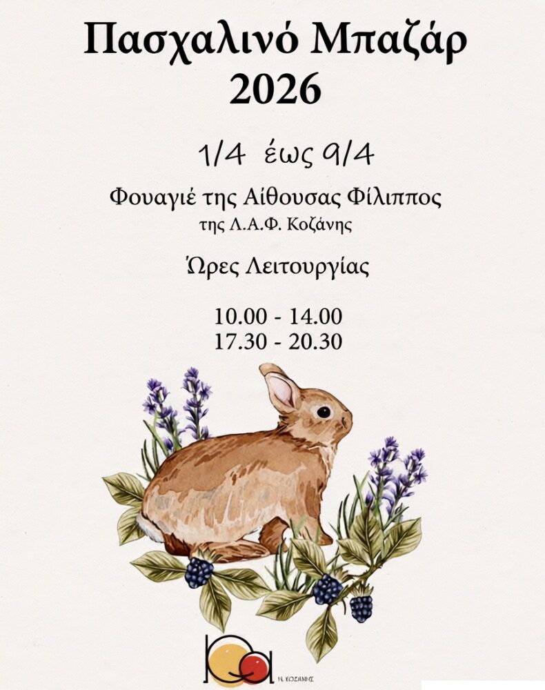 Το πασχαλινό bazaar του Συλλόγου Γονέων Ατόμων με Αυτισμό Κοζάνης ξεκίνησε και θα διαρκέσει έως και τη Μεγάλη Πέμπτη 9 Απριλίου, στο φουαγιέ της αίθουσας «Φίλιππος», στο κτίριο της ΛΑΦ Κοζάνης, επί της οδού Παύλου Μελά.