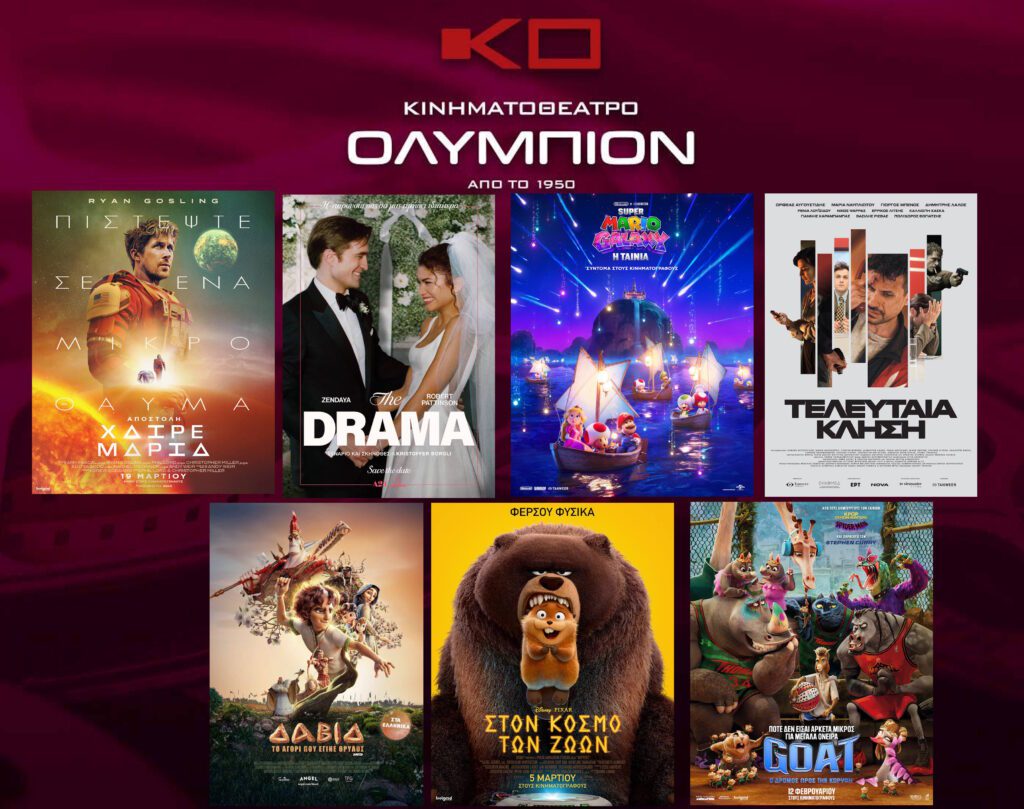Το πρόγραμμα του κινηματογράφου «Ολύμπιον» διαμορφώνεται για την πασχαλινή περίοδο από τη Μεγάλη Πέμπτη 9 Απριλίου 2026 έως και την Τετάρτη 15 Απριλίου 2026, με τον κινηματογράφο να παραμένει κλειστός από τη Μεγάλη Παρασκευή έως και την Κυριακή του Πάσχα.