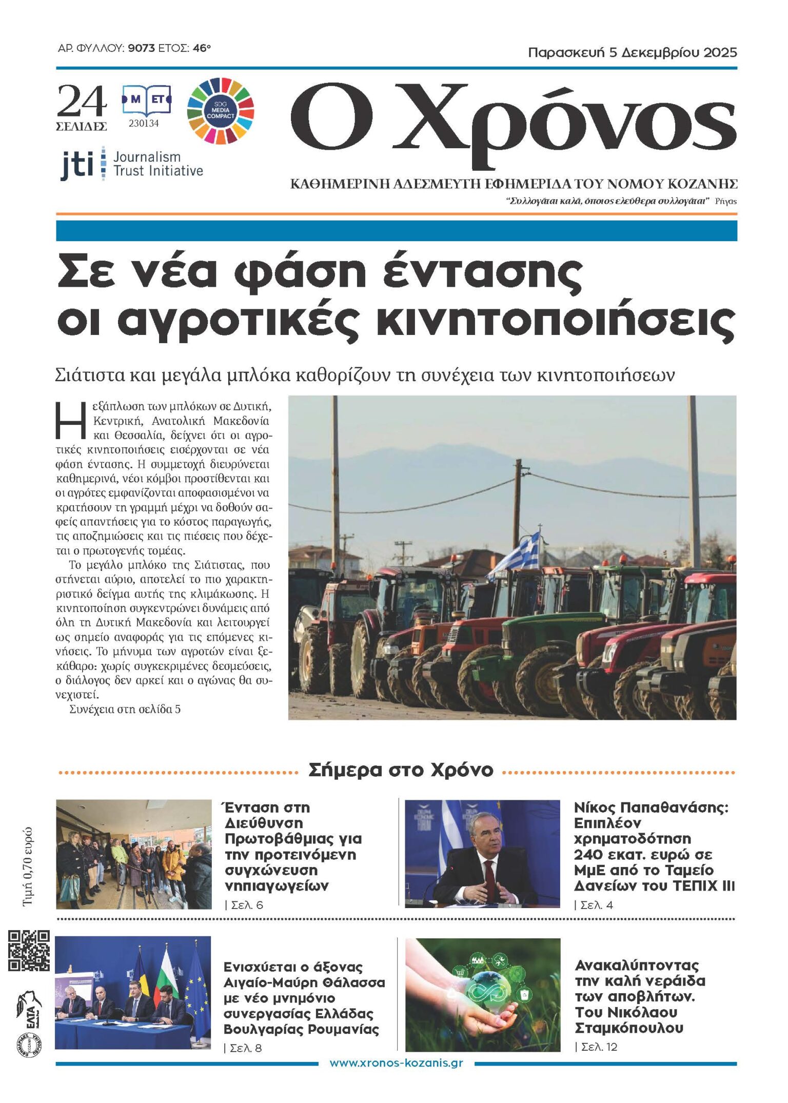 Πρωτοσέλιδο Παρασκευής 5 Δεκεμβρίου 2025
