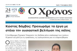Πρωτοσέλιδο Τετάρτης 8 Οκτωβρίου 2025 Τελευταία ενημέρωση: 7 Οκτωβρίου 2025 20:17 από Χρόνος Κοζάνης Share SHARE ΕΤΙΚΕΤΕΣ:εφημερίδαΟ Χρόνος Κοζάνηςπρωτοσέλιδο Μοιραστείτε την είδηση Facebook Twitter Αντιγραφή συνδέσμου Εκτύπωση ΡΟΗ ΕΙΔΗΣΕΩΝ Πρωτοσέλιδο Τετάρτης 8 Οκτωβρίου 2025 Συνεχίζονται οι αντιδράσεις για την κατάργηση του Ληξιαρχείου Αιανής Ο Νιαμεριώτικος χαλβάς στην Κοζάνη και η γλυκιά ιστορία του Παράδοση έργου ψηφιακής αναβάθμισης στο Εργατοϋπαλληλικό Κέντρο Καστοριάς Ενημέρωση για την παρουσία του επιβλαβούς οργανισμού καραντίνας Bactrocera zonata Εκπαίδευση και τουρισμός ενώνονται σε μία νέα δράση με e-books για μαθητές και εκπαιδευτικούς Διακοπή υδροδότησης την Πέμπτη λόγω διαρροής σε κεντρικό αγωγό Σκηνικό παραπλάνησης με πρόφαση φιλοζωική δράση – Έκλεψαν 14.000 ευρώ από 70χρονο στη Φλώρινα Στη Ρεάλ Μαδρίτης ο Γιώργος Δεληζήσης του Φ.Σ. Κοζάνης Το πρόγραμμα της 113ης επετείου απελευθέρωσης της Πτολεμαΐδας