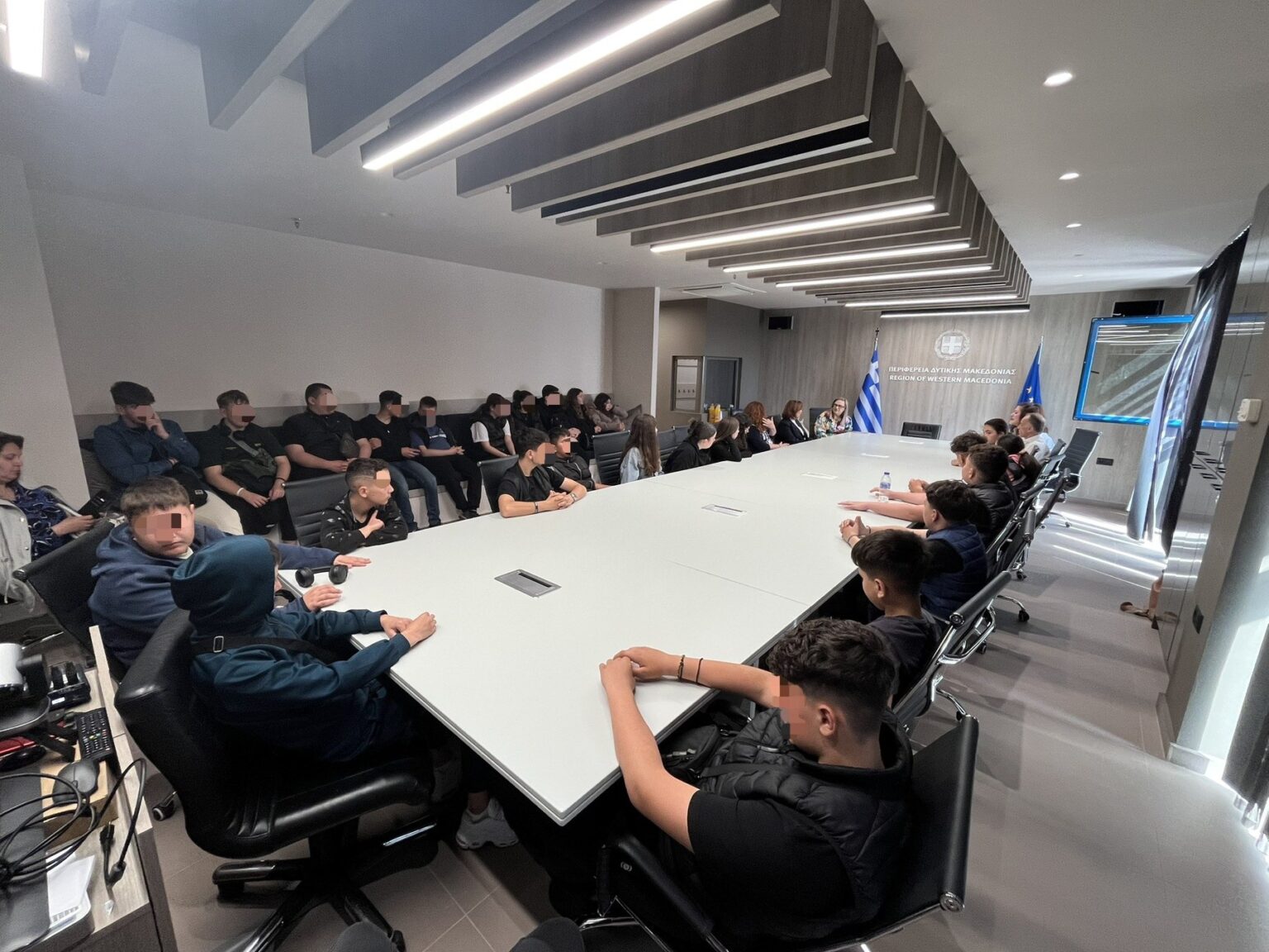 Μία από τις σχολικές αποστολές που επισκέπτονται τη Δυτική Μακεδονία στο πλαίσιο της δράσης «Σχολικός Τουρισμός – School Hopping» υποδέχθηκαν την Πέμπτη 30 Απριλίου 2026, στο κτίριο της Περιφέρειας στη ΖΕΠ, ο Περιφερειάρχης Γιώργος Αμανατίδης, μαζί με την Αντιπεριφερειάρχη Τουρισμού, Πολιτισμού και Περιβάλλοντος Πολυτίμη Φαρμάκη και την Αντιπεριφερειάρχη Παιδείας και Αθλητισμού Όλγα Πουταχίδου.