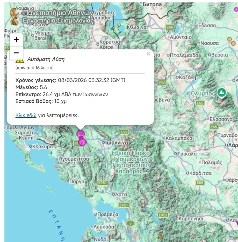 Η πρώτη και ισχυρότερη δόνηση καταγράφηκε στις 05:32 το πρωί και είχε μέγεθος 5,6 βαθμών της κλίμακας Ρίχτερ. Σύμφωνα με τα στοιχεία του Γεωδυναμικού Ινστιτούτου, το επίκεντρο εντοπίζεται 26,4 χιλιόμετρα βορειοδυτικά των Ιωαννίνων, κοντά στο χωριό Δεσποτικό, ενώ το εστιακό βάθος υπολογίζεται στα 10 χιλιόμετρα. Η δόνηση έγινε ιδιαίτερα αισθητή σε πολλές περιοχές, προκαλώντας έντονη ανησυχία στους κατοίκους.Λίγα λεπτά αργότερα και συγκεκριμένα τέσσερα λεπτά μετά την πρώτη δόνηση, σημειώθηκε δεύτερος σεισμός μεγέθους 4,7 Ρίχτερ. Το επίκεντρο της δεύτερης δόνησης εντοπίζεται 22,8 χιλιόμετρα ανατολικά των Ιωαννίνων, κοντά στο χωριό Βουτσαράς, ενώ το εστιακό βάθος ήταν ιδιαίτερα μικρό, μόλις 2 χιλιόμετρα, γεγονός που συνέβαλε στο να γίνει έντονα αισθητή στην ευρύτερη περιοχή.Οι σεισμικές δονήσεις έγιναν αισθητές και στην Κοζάνη, όπου αρκετοί κάτοικοι ανέφεραν ότι αισθάνθηκαν το κούνημα, κυρίως κατά τη διάρκεια της πρώτης ισχυρής δόνησης.