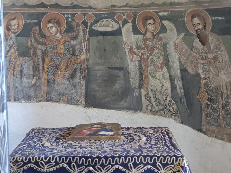 Ο πάτερ Ευάγγελος περιγράφει ένα ακόμη σοβαρό ζήτημα, αναφέροντας ότι «κάποιοι έχουν βγάλει τα μάτια των Αγίων στις αγιογραφίες», επισημαίνοντας ότι παρόμοια περιστατικά έχουν καταγραφεί και σε άλλα ξωκλήσια της περιοχής.