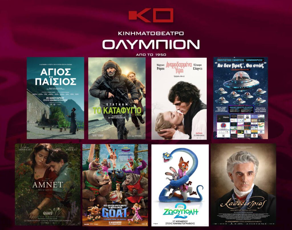 Το πρόγραμμα του κινηματογράφου «Ολύμπιον» από την Πέμπτη 19 Φεβρουαρίου έως και την Τετάρτη 25 Φεβρουαρίου 2026 κινείται σε αποκριάτικους ρυθμούς, καθώς εκτός από τις προβολές φιλοξενείται και θεατρική παράσταση, ενώ την Κυριακή της Μεγάλης Αποκριάς, 22 Φεβρουαρίου, η αίθουσα θα παραμείνει κλειστή.