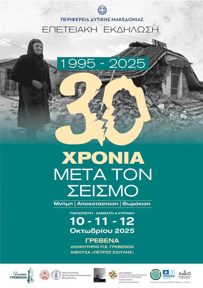 Με αφορμή την επέτειο των 30 ετών, διοργανώνεται στις 10-12 Οκτωβρίου στα Γρεβενά ένα τριήμερο εκδηλώσεων με τίτλο «Μνήμη, αποκατάσταση, θωράκιση», που συνδυάζει ιστορική αναδρομή, άσκηση ετοιμότητας και επιστημονικές παρεμβάσεις. Κατά τη διάρκειά του θα ανακοινωθεί και η ίδρυση του πρώτου ζωντανού εργαστηρίου πολιτικής προστασίας στην Ευρωπαϊκή Ένωση, το οποίο θα λειτουργήσει στη Δυτική Μακεδονία με σκοπό την εκπαίδευση πολιτών και φορέων μέσω σύγχρονων τεχνολογιών και τεχνητής νοημοσύνης.