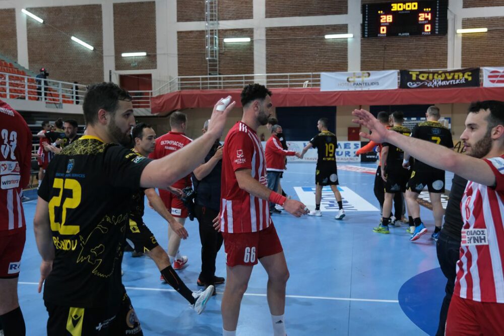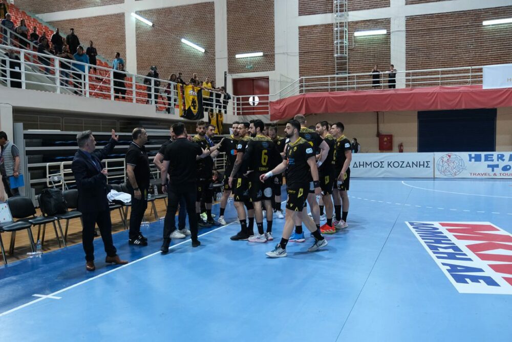Η ΑΕΚ πήρε το δεύτερο «εισιτήριο» για τον αυριανό (30/4, 20:00) τελικό του Κυπέλλου χάντμπολ των ανδρών. Η ομάδα του Δημήτρη Δημητρούλια νίκησε 28-24 τον Ολυμπιακό/Όμιλο Ξυνή στον δεύτερο ημιτελικό του φάιναλ φορ, το οποίο διεξάγεται στο ΔΑΚ Λευκόβρυσης Κοζάνης, και προκρίθηκε για ένατη φορά στην καταληκτική αναμέτρηση της διοργάνωσης, όπου θα αντιμετωπίσει τον -«πρωτάρη» σε τελικό- ΑΕΣΧ Πυλαίας. Έτσι, ο «Δικέφαλος» έχει τη δυνατότητα να υπερασπιστεί τον τίτλο που κατέκτησε πέρυσι στην Κοζάνη και να στεφθεί κυπελλούχος Ελλάδας για πέμπτη φορά στην Ιστορία του, μετά το 2009, το 2013, το 2014 και το 2021. Στο ημίχρονο η ΑΕΚ ήταν μπροστά στο σκορ με 13-11.