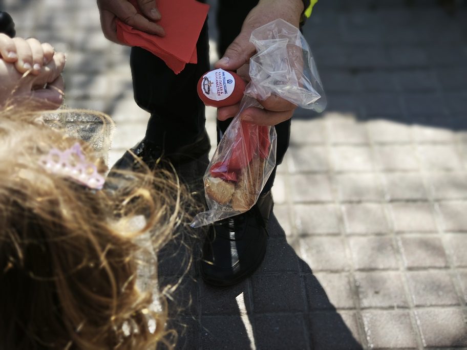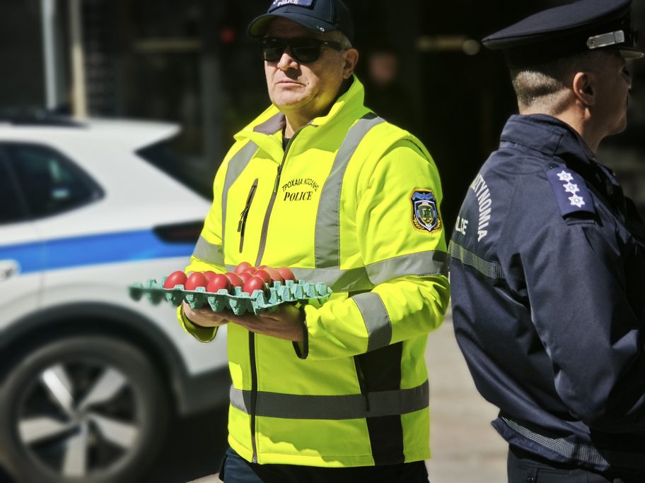 Στο πλαίσιο της δράσης, η Διεύθυνση Αστυνομίας Κοζάνης μοίρασε ενημερωτικό υλικό σε οδηγούς και πεζούς, καθώς και κόκκινα αυγά αλλά και μπισκότα σε μικρά παιδιά, απευθύνοντας παράλληλα συστάσεις για την τήρηση του Κώδικα Οδικής Κυκλοφορίας και ευχόμενη σε όλους καλό Πάσχα και καλή Ανάσταση.