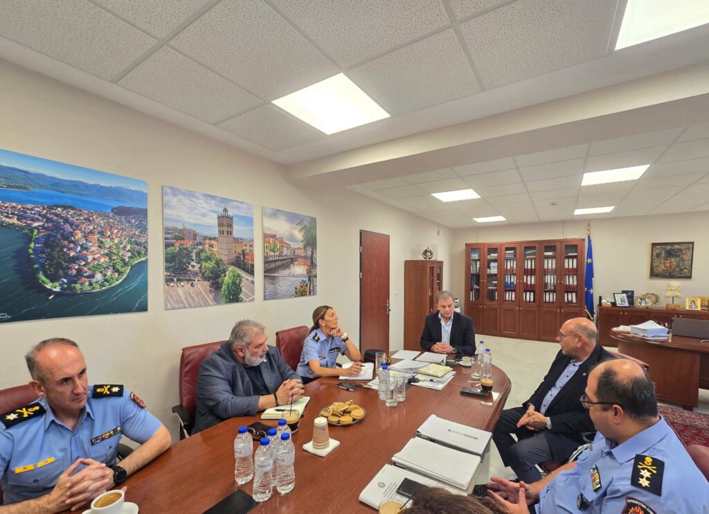Η συνάντηση πραγματοποιήθηκε παρουσία του Δημάρχου Εορδαίας Παναγιώτη Πλακεντά, του Διοικητή της Περιφερειακής Πυροσβεστικής Διοίκησης Δυτικής Μακεδονίας Ιωάννη Αμανατίδη, του Προϊστάμενου Κλάδου Διοικητικής Υποστήριξης Υποστράτηγου Ιωάννη Λουκάκη και της Διοικήτριας της Σχολής Πυροσβεστών Πτολεμαΐδας, Πυράρχου Αρχοντίας Σερέτη.