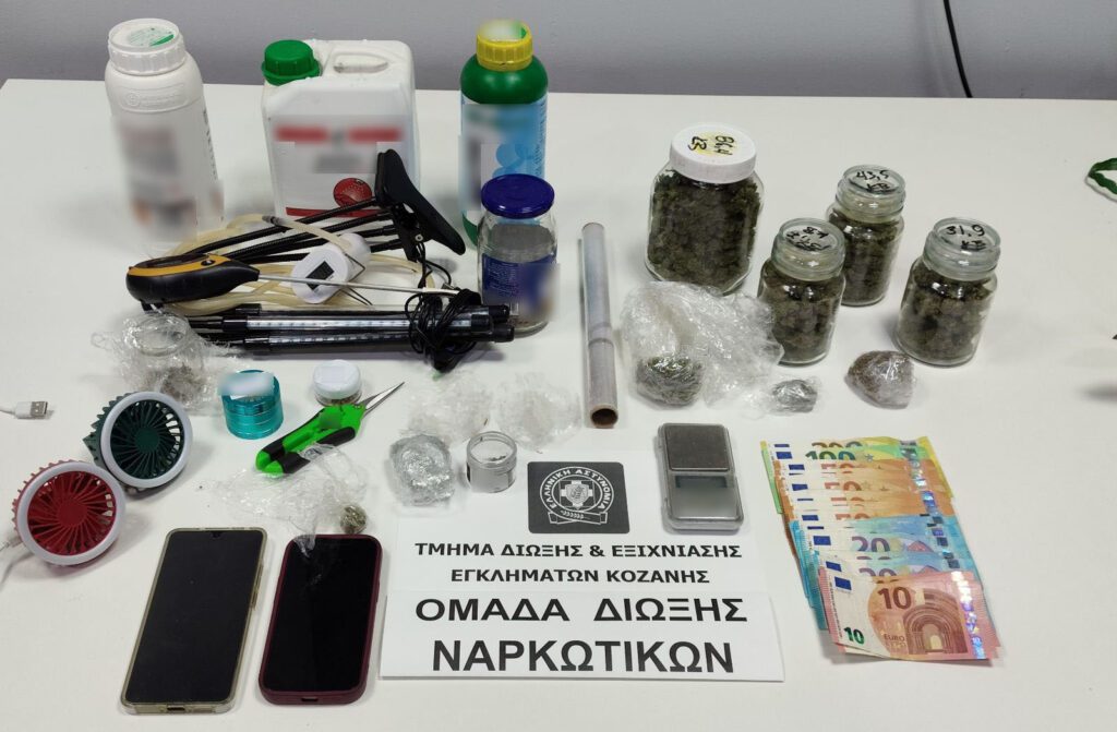 Κατά τη διάρκεια ελέγχου στον 24χρονο βρέθηκαν 15,7 γραμμάρια ακατέργαστης κάνναβης, ένα κινητό τηλέφωνο και 60 ευρώ. Σε έρευνα που ακολούθησε στην οικία του στην Κοζάνη, όπου εντοπίστηκε και η 22χρονη, κατασχέθηκαν συνολικά 216,8 γραμμάρια ακατέργαστης κάνναβης, 21,3 γραμμάρια αποψιλωμένων κλώνων κάνναβης, 4,4 γραμμάρια κάνναβης με καπνό, 320 σπόροι κάνναβης, εξαρτήματα για εσωτερική καλλιέργεια, μία ζυγαριά ακριβείας, τρίφτης, 930 ευρώ και ακόμη ένα κινητό τηλέφωνο.