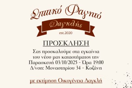Τα εγκαίνια του νέου καταστήματός της πραγματοποιεί την Παρασκευή 3 Οκτωβρίου 2025,…