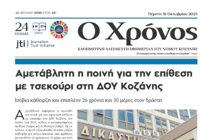 Πρωτοσέλιδο Πέμπτης 16 Οκτωβρίου 2025