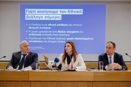 Η Υπουργός Παιδείας, Θρησκευμάτων και Αθλητισμού, Σοφία Ζαχαράκη, σε συνέντευξη τύπου στο Υπουργείο,…