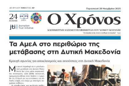 Πρωτοσέλιδο Παρασκευής 28 Νοεμβρίου 2025