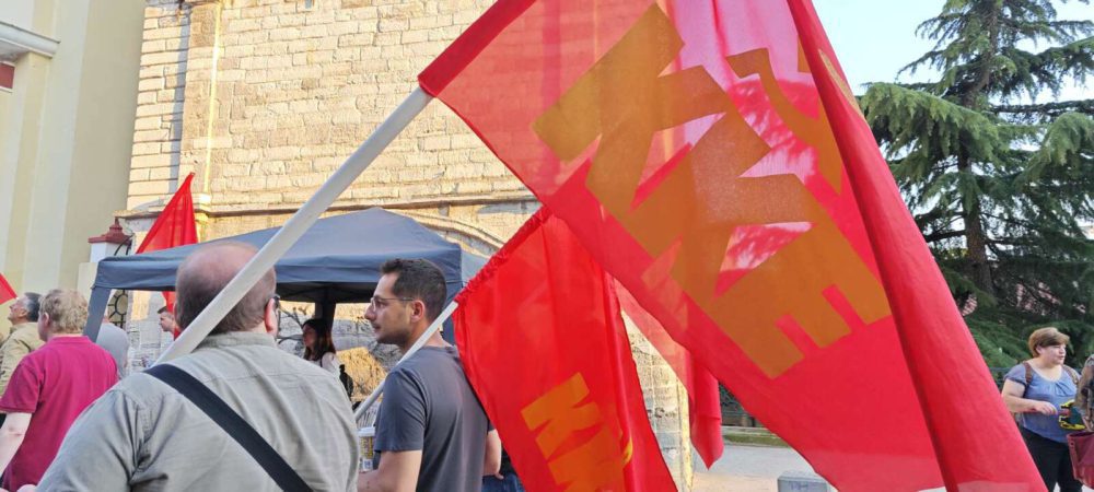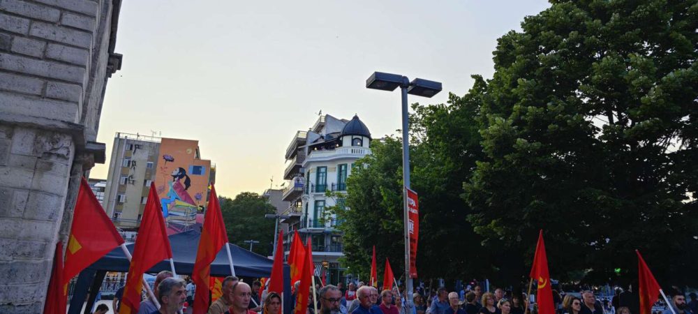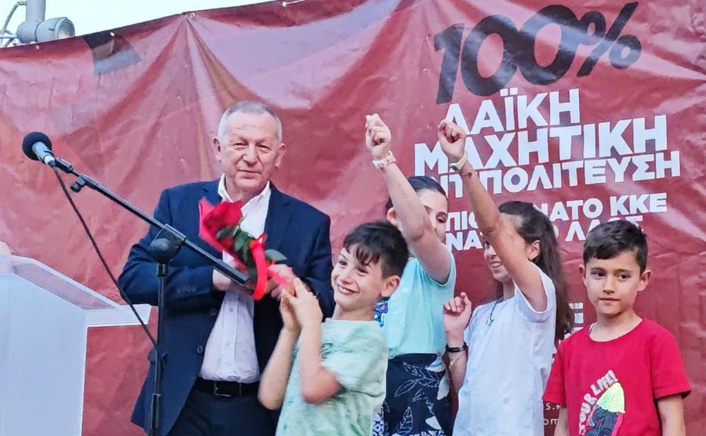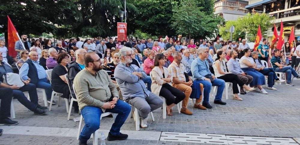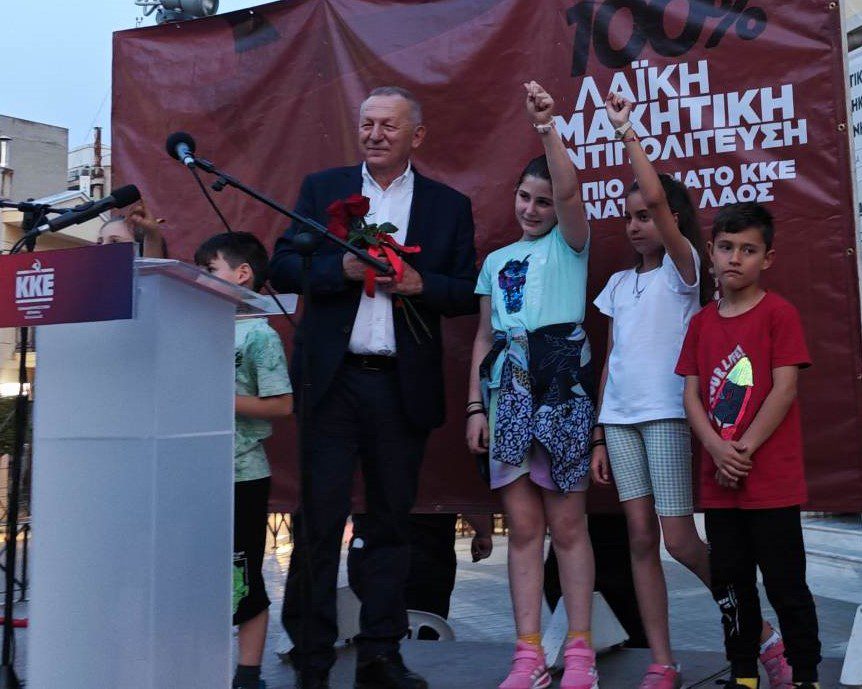 Ενώ στη συνέχεια κάλεσε τον λαό να στηρίξει το ΚΚΕ στις εκλογές της 25ης Ιούνη για να γίνει πιο δυνατή η πάλη του.