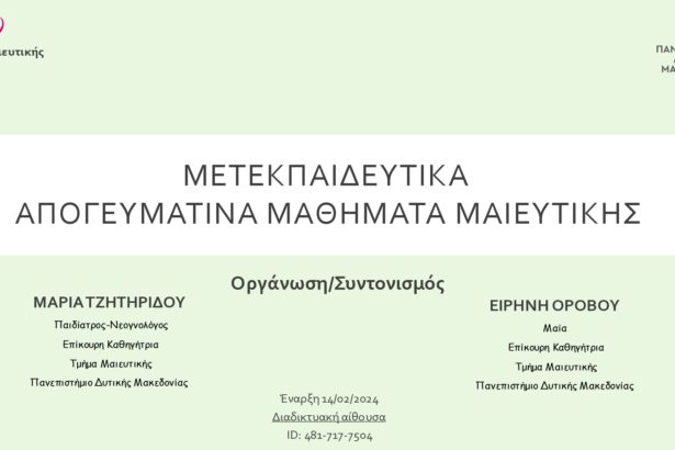 To Tμήμα Μαιευτικής του Πανεπιστημίου Δυτικής Μακεδονίας ξεκινά την έναρξη κύκλου Μετεκπαιδευτικών ΔΩΡΕΑΝ Μαθημάτων στη Νεογνολογία και σε θέματα Περιγεννητικής Ιατρικής με Πιστοποιητικό Παρακολούθησης. Τα μετεκπαιδευτικά μαθήματα του Τμήματος Μαιευτικής, απευθύνονται σε…