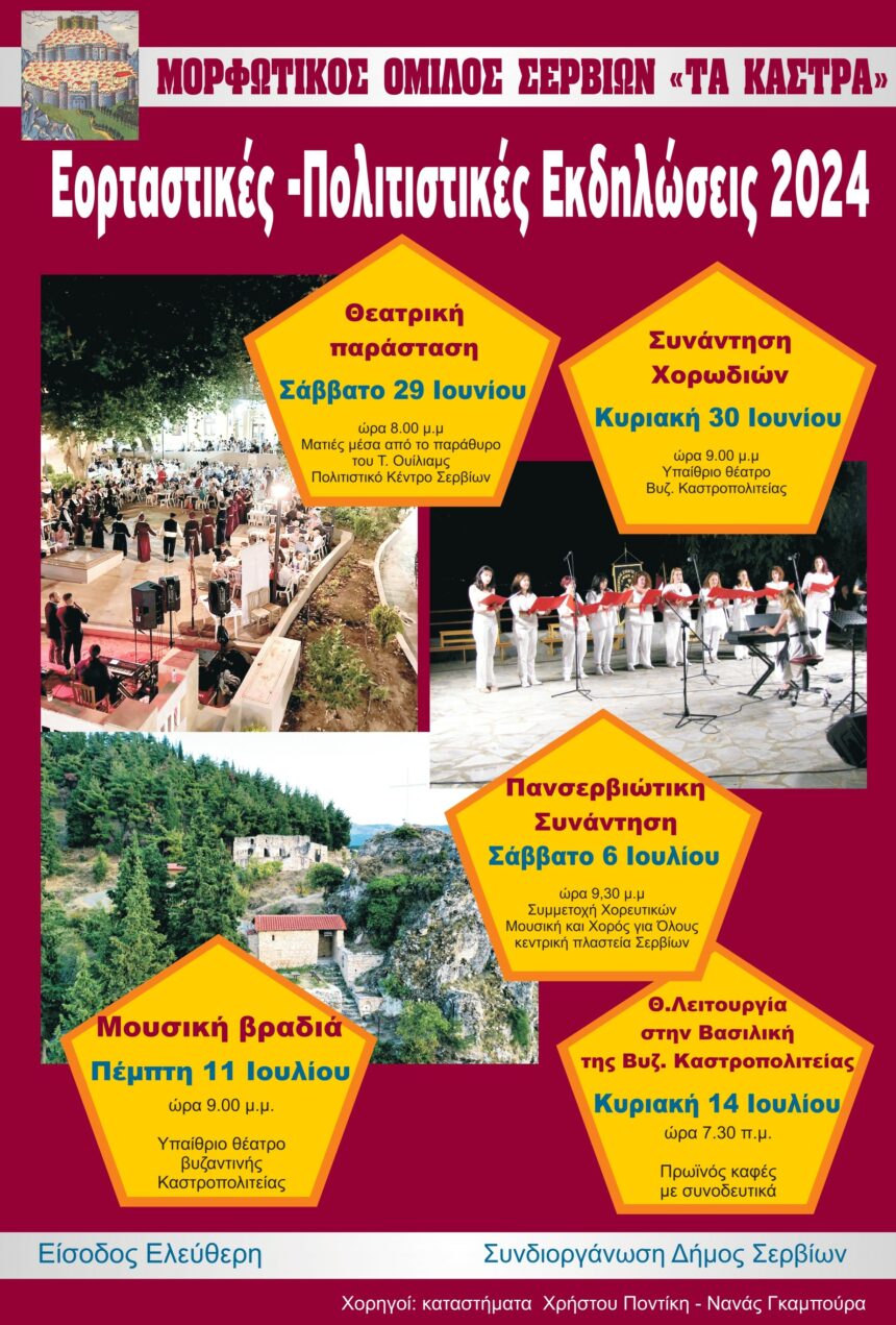Σας καλούμε να τιμήσετε τις Εορταστικές – Πολιτιστικές εκδηλώσεις που διοργανώνει ο Όμιλός μας τιμώντας την Μνήμη της Πολιούχου μας Αγ. Κυριακής. Φέτος δε και την Ανακομιδή των Λειψάνων της…